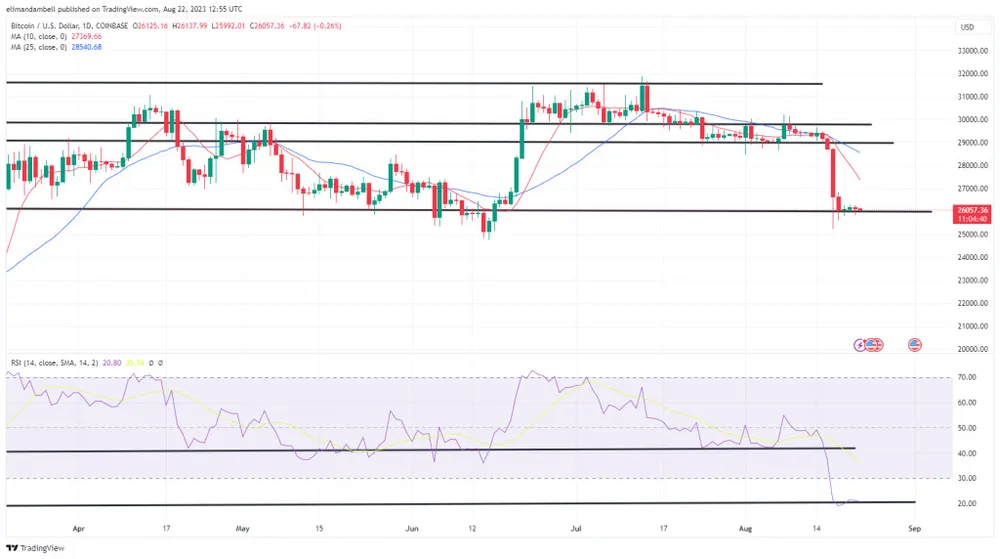 Bitcoin đã giảm nhẹ xuống dưới mức 26.000 USD trong phiên giao dịch ngày hôm qua, do tâm lý chung trên thị trường vẫn giảm.