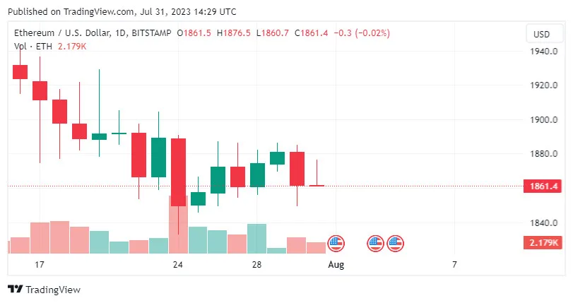Sau mức thấp 1.851,73 USD vào Chủ nhật 30-7, ETH/USD đã tăng lên mức cao nhất là 1.884,14 USD vào đầu ngày.