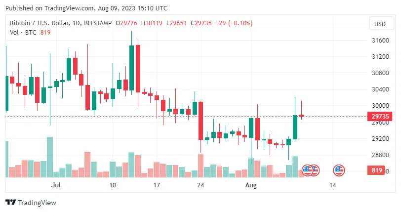 Kể từ đó, mức tăng trước đó đã giảm và vào thời điểm viết bài, vua coin đang giao dịch ở mức 29.791,72 USD.