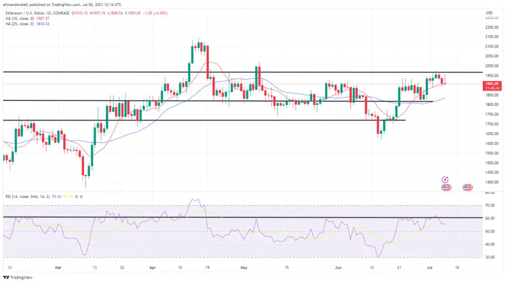 Nếu RSI chạm xuống điểm này, rất có thể ETH sẽ được giao dịch dưới mức 1.890 USD.