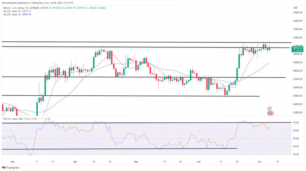 Những người đầu cơ giá lên dường như một lần nữa nhắm mục tiêu này. Tuy nhiên, trước tiên họ sẽ cần phải vượt ra khỏi mức trần ở mức 31.500 USD.