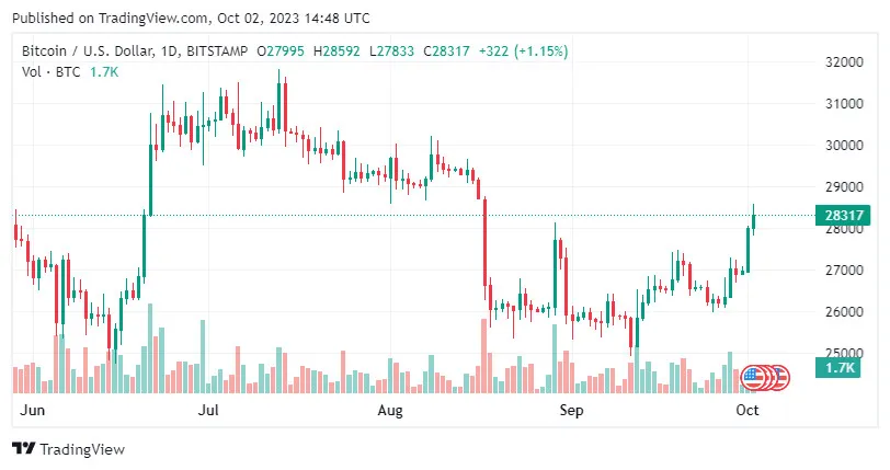 Bitcoin (BTC) đã bắt đầu giao dịch trong tháng trên mức 28.000 USD, khi các nhà giao dịch trở nên mạnh mẽ để bắt đầu tháng “Uptober”.