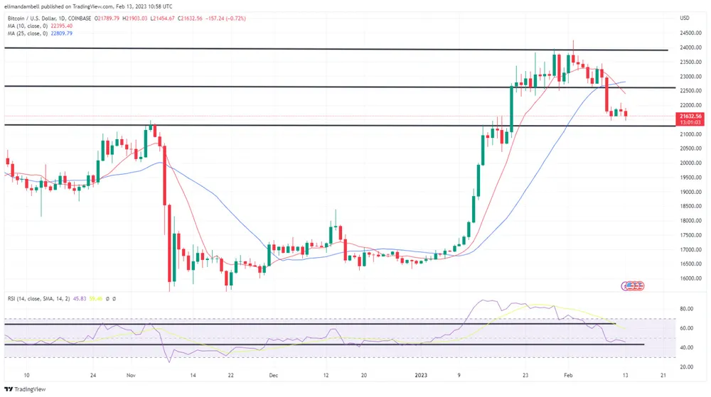 Sau mức cao 22.060,99 USD vào Chủ nhật 12/2, BTC/USD đã giảm xuống mức thấp nhất trong ngày là 21.539,50 USD vào đầu tuần.