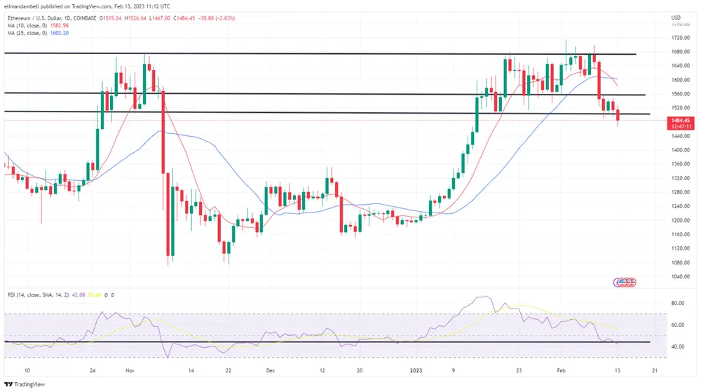 Nếu xu hướng giảm này tiếp tục, rất có khả năng Ethereum có thể chạm với mức hỗ trợ ở mốc 1.450 USD.