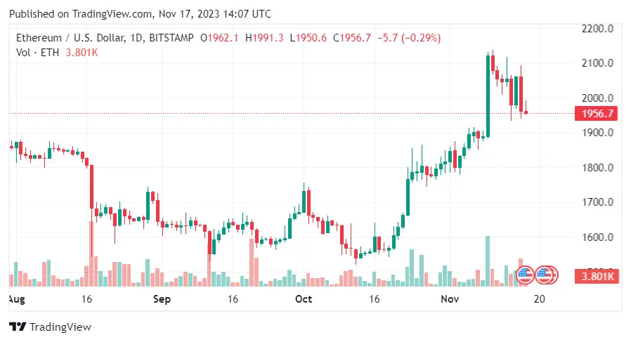 Hiệu suất của Bitcoin vào ngày 17-11-2023, mặc dù có nhiều biến động nhưng vẫn nghiêng về xu hướng tích cực. Mức cao nhất trong ngày là 37.904 USD và giá đóng cửa trên mức tâm lý quan trọng là 36.000 USD cho thấy tâm lý tăng giá kiên cường.