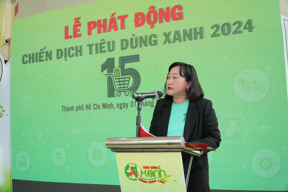 Đại diện Ban tổ chức phát biểu tại buổi lễ, Phó Tổng Biên tập Báo SGGP Bùi Thị Hồng Sương bày tỏ niềm tự hào với chặng đường 15 năm qua đã và đang góp phần không nhỏ trong việc kiến tạo, định vị xu hướng tiêu dùng mới rất sớm trong cộng đồng. Đến nay, Chiến dịch Tiêu dùng Xanh đã trở thành chương trình có tính lan toả và thu hút được sự tham gia, hưởng ứng mạnh mẽ, rộng khắp của cộng đồng trong và ngoài nước.