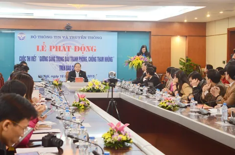 (ĐTTCO)-Sáng 18-12, Bộ TT&TT phối hợp với Bộ Tư pháp tổ chức phát động Cuộc thi viết “Gương sáng trong đấu tranh phòng, chống tham nhũng” trên báo chí.