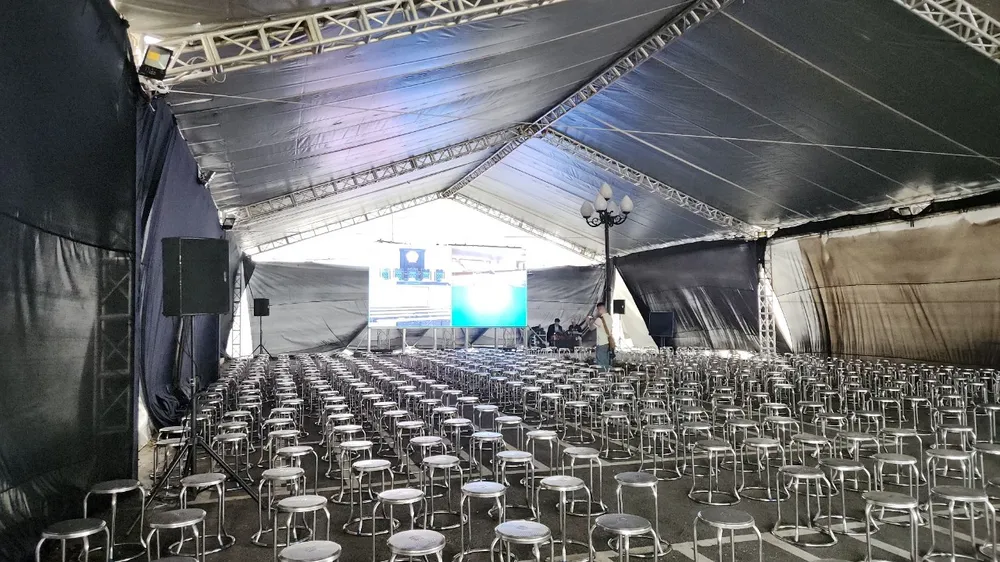 Cơ quan xét xử sắp xếp hàng ngàn chiếc ghế để các bị hại theo dõi phiên tòa
