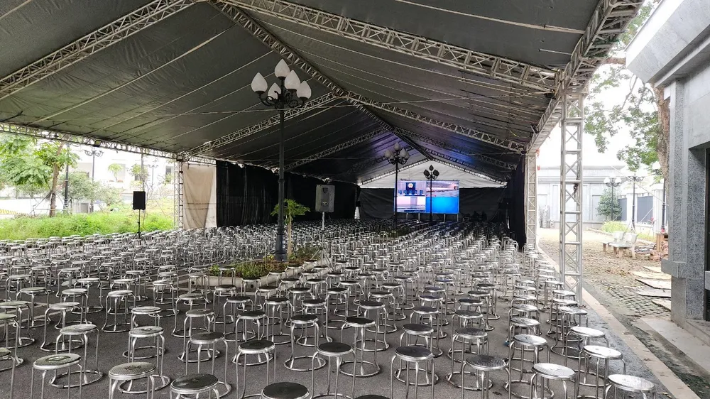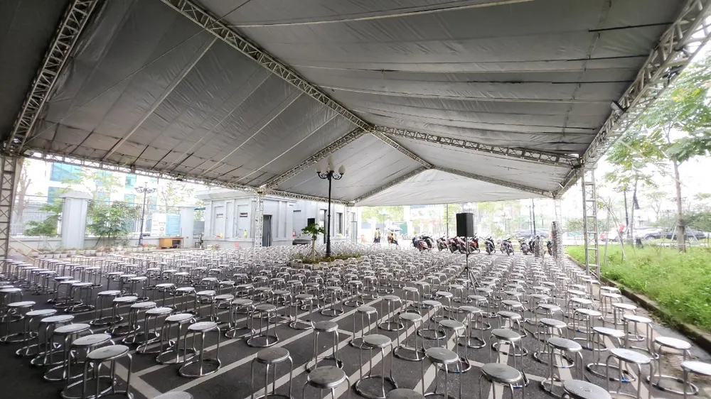 Chiều 18-3, tại khuôn viên trụ sở Tòa án nhân dân TP Hà Nội, xuất hiện nhà bạt cỡ lớn với hàng ngàn chỗ ngồi cùng hệ thống màn hình lớn. Khu vực này là nơi dành cho các bị hại theo dõi diễn biến phiên xét xử.