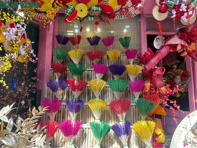 Các cửa hàng dọc hai bên phố Hàng Mã tràn ngập sắc đỏ và vàng - hai sắc màu chủ đạo nổi bật nhất, tượng trưng cho sự may mắn, sung túc và thịnh vượng trong lễ Tết cổ truyền.