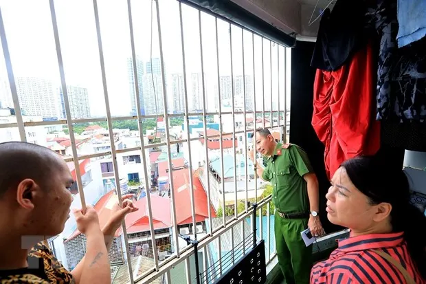 Nhiều người dân đã tự làm lối thoát hiểm cho mình sau nhiều vụ hỏa hoạn tại các khu chung cư xảy ra trên địa bàn thành phố Hà Nội. (Ảnh: Tuấn Anh/TTXVN)
