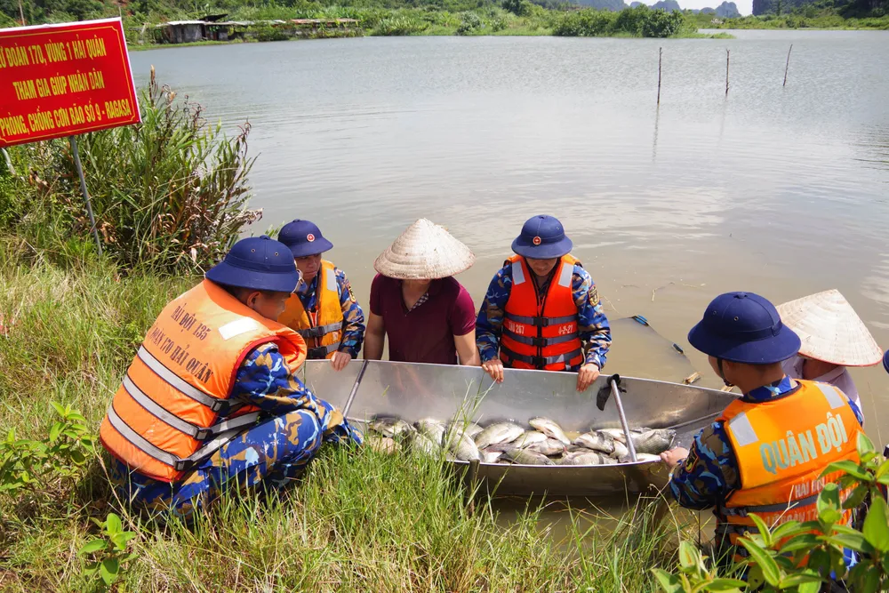Cùng ngày, cán bộ, chiến sĩ đã phối hợp chặt chẽ với chính quyền địa phương, ra quân giúp người dân chằng chống nhà cửa, gia cố tàu thuyền và lồng bè nuôi trồng thủy sản. Nhiều hộ gia đình đã được hỗ trợ thu hoạch cá và các sản phẩm thủy sản kịp thời, tránh được thiệt hại lớn có thể do bão gây ra.