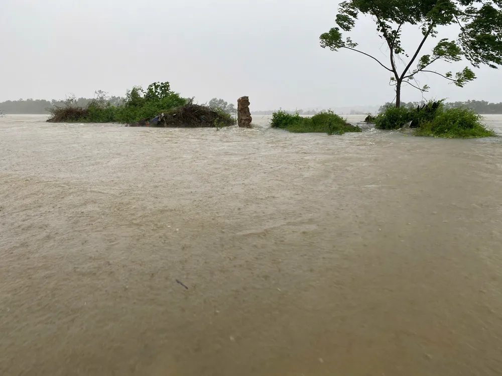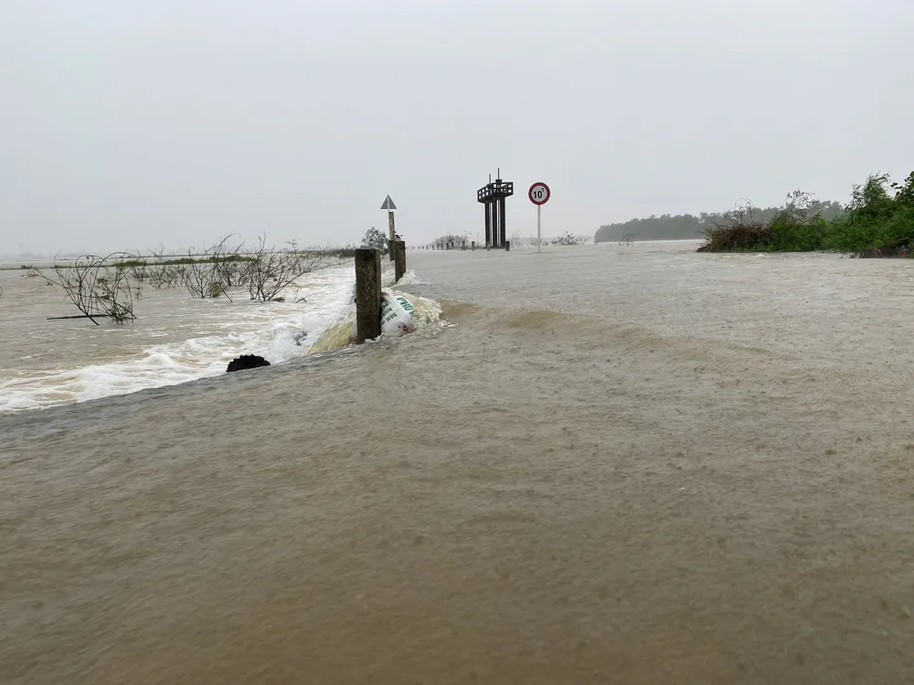 Nước lũ tràn đê sông Kiến Giang