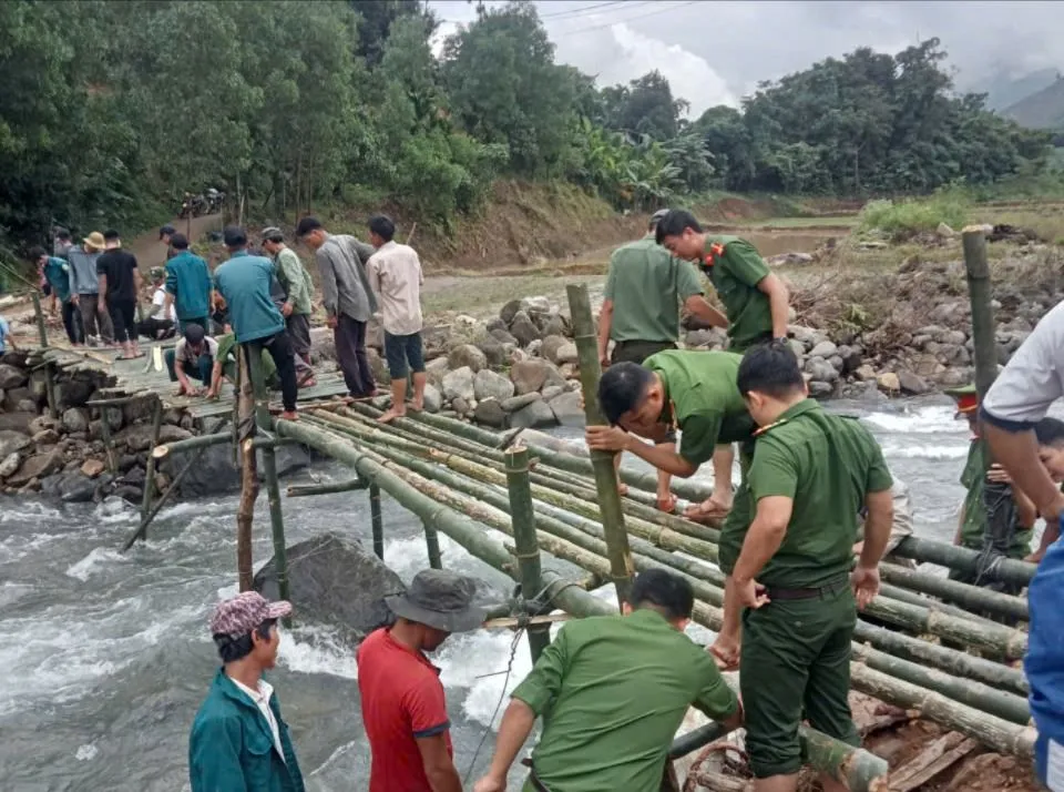 Ngay sau đó, Công an xã Ba Xa đã phối hợp cùng người dân địa phương khẩn trương khắc phục. Từng cây tre được người dân đóng góp, chuyển đến bờ suối; các lực lượng cùng nhau gia cố móng cầu, dựng khung, kết nối từng thanh tre băng qua dòng suối, hoàn thiện mặt cầu chắc chắn, đảm bảo an toàn cho việc đi lại.