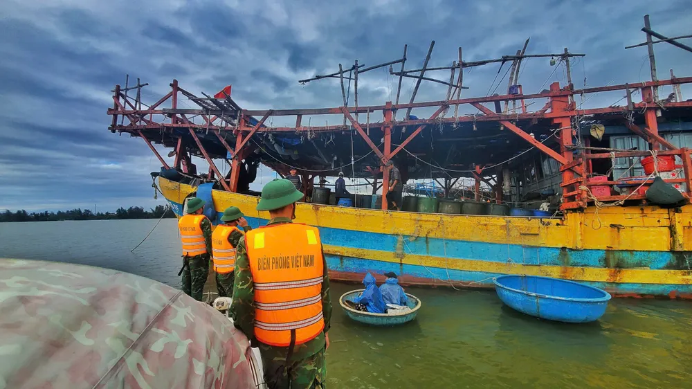 Vận động các tàu cá về nơi neo đậu tránh trú. Ảnh: NGUYỄN TRANG