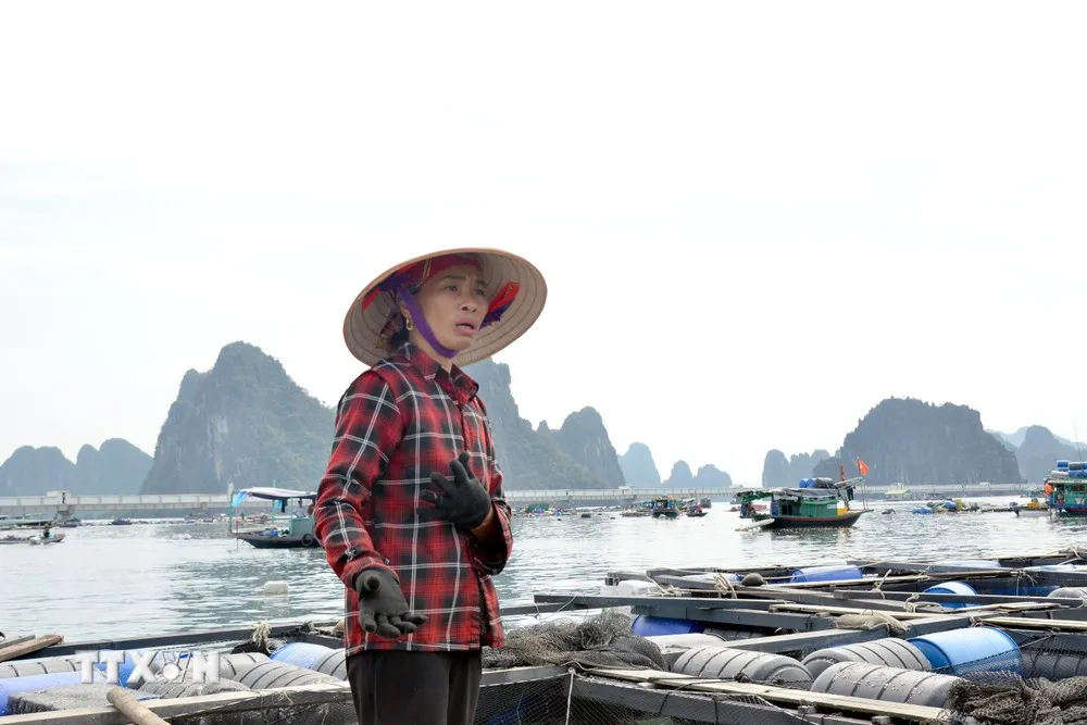 Bà Nguyễn Thị Hoàn (55 tuổi) người dân phường Quảng Yên, thị xã Quảng Yên nuôi 35 ô cá song, cá giò tại khu vực biển thành phố Cẩm Phả bị thiệt hại hơn 2 tỷ đồng. (Ảnh: Thanh Vân/TTXVN)