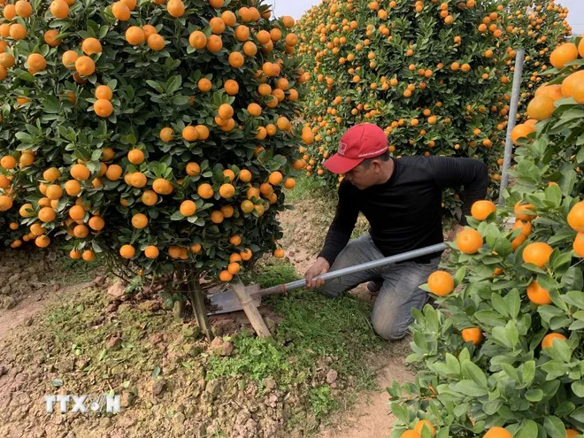 Gia đình anh Trường có 7 sào trồng quất với tổng số cây khoảng 450. Vụ Tết năm nay, anh chuẩn bị 200 cây phục vụ khách nhưng 70 cây bị hỏng do trận lụt sau bão số 3 (bão Yagi) chỉ còn lại 130 cây. Cuối tháng 10 Âm lịch, nhiều khách đã tìm về vườn của anh để đặt cây, đầu tháng Chạp anh đã huy động thêm nhân công để đánh cây cho khách.