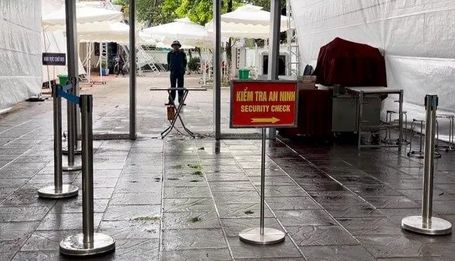 Khu vực kiểm tra an ninh phía ngoài cổng của Nhà văn hóa thôn Lại Đà