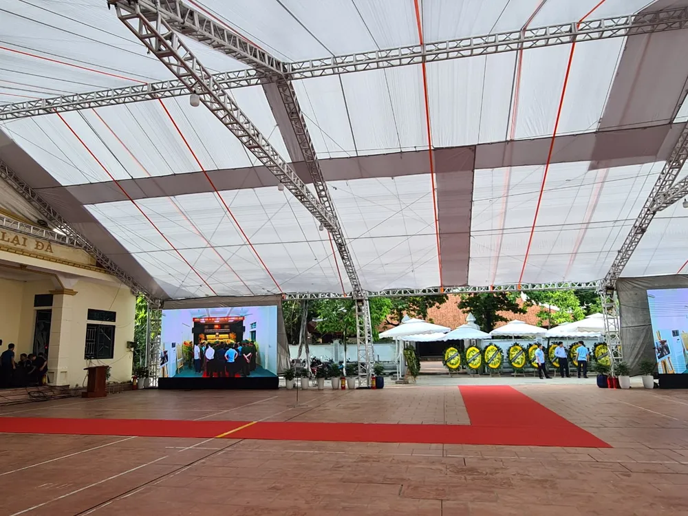 Hội trường Nhà văn hóa thôn Lại Đà, nơi diễn ra Lễ viếng và Lễ truy điệu Tổng Bí thư Nguyễn Phú Trọng