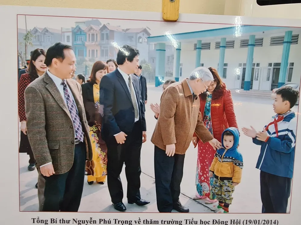 Một số hình ảnh lúc sinh thời của Tổng Bí thư Nguyễn Phú Trọng được trưng bày tại hội trường Nhà văn hóa thôn Lại Đà