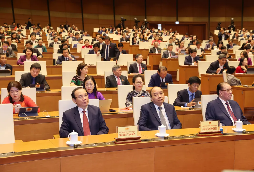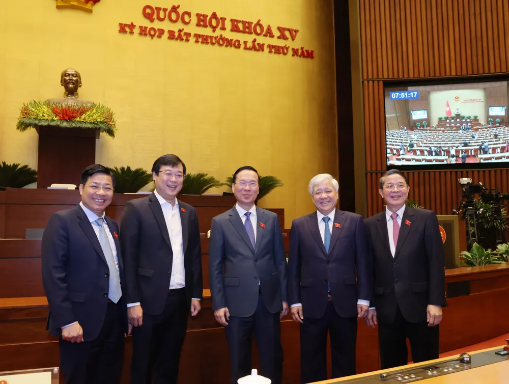 Chủ tịch nước Võ Văn Thưởng và các đại biểu tại phiên bế mạc kỳ họp Quốc hội bất thường lần thứ 5, sáng 18-1. Ảnh: QUANG PHÚC