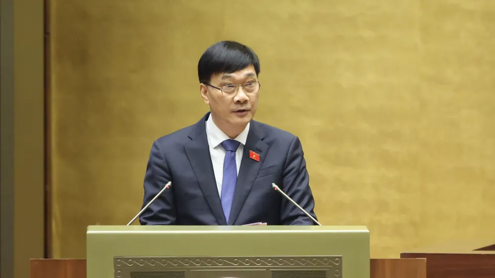 Chủ nhiệm Ủy ban Kinh tế của Quốc hội Vũ Hồng Thanh trình bày báo cáo giải trình, tiếp thu, chỉnh lý dự thảo Luật Luật Kinh doanh bất động sản (sửa đổi). Ảnh: QUANG PHÚC