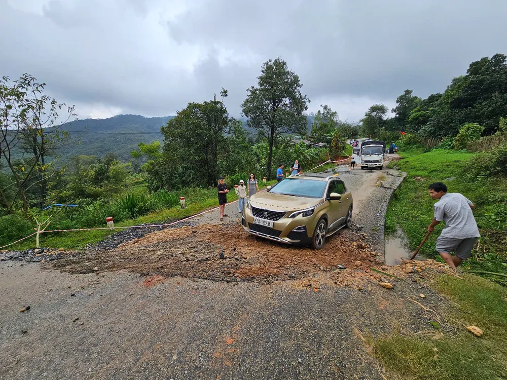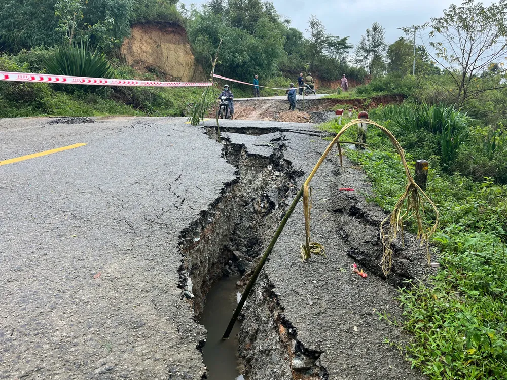 Đây là tuyến đường giao thông huyết mạch. Thời gian qua, mưa lớn khiến nhiều vị trí đường đoạn qua xã Tu Mơ Rông bị lún, nứt, khiến việc đi lại khó khăn.