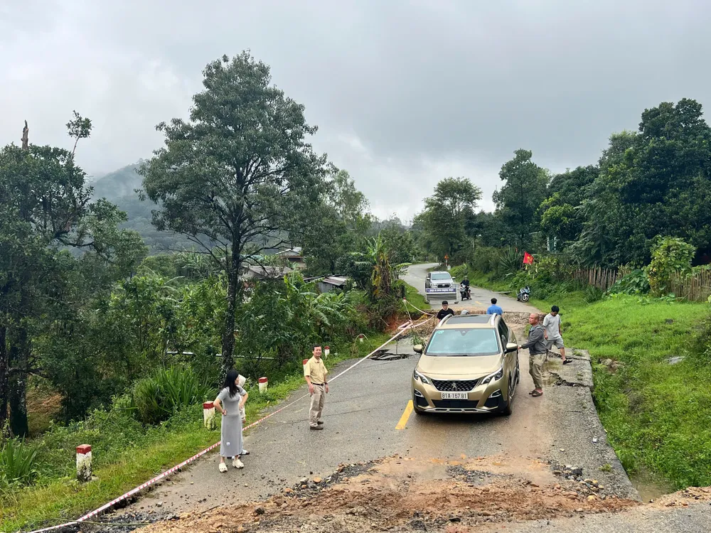 Do ảnh hưởng mưa bão, khoảng 1 tuần qua, tại vị trí Km 168+900 (thuộc Quốc lộ 40B) đã bị sụt lún.