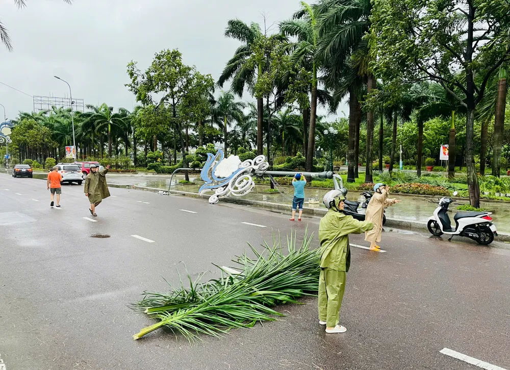 Tranh thủ trời ngớt mưa, lực lượng chức năng đã triển khai công tác dọn dẹp, khắc phục cây đỗ ngã, trụ đèn gãy để đảm bảo an toàn giao thông.