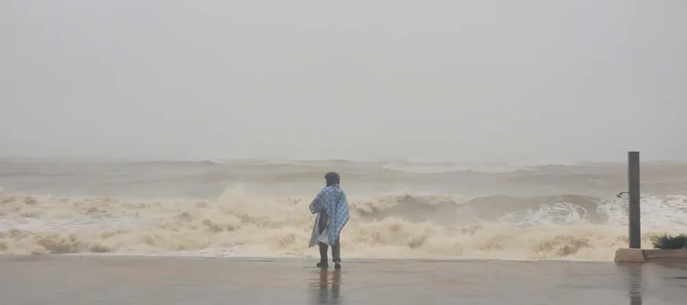 Tại khu vực bãi biển, sóng dâng cao, biển động dữ dội. Ở eo biển Ghềnh Ráng, nhiều cột sóng lớn liên tiếp xô vào bờ, uy hiếp tuyến kè ven biển. Đến khoảng 16 giờ, gió mạnh dần, triều cường xuất hiện tại một số khu vực ven bờ.