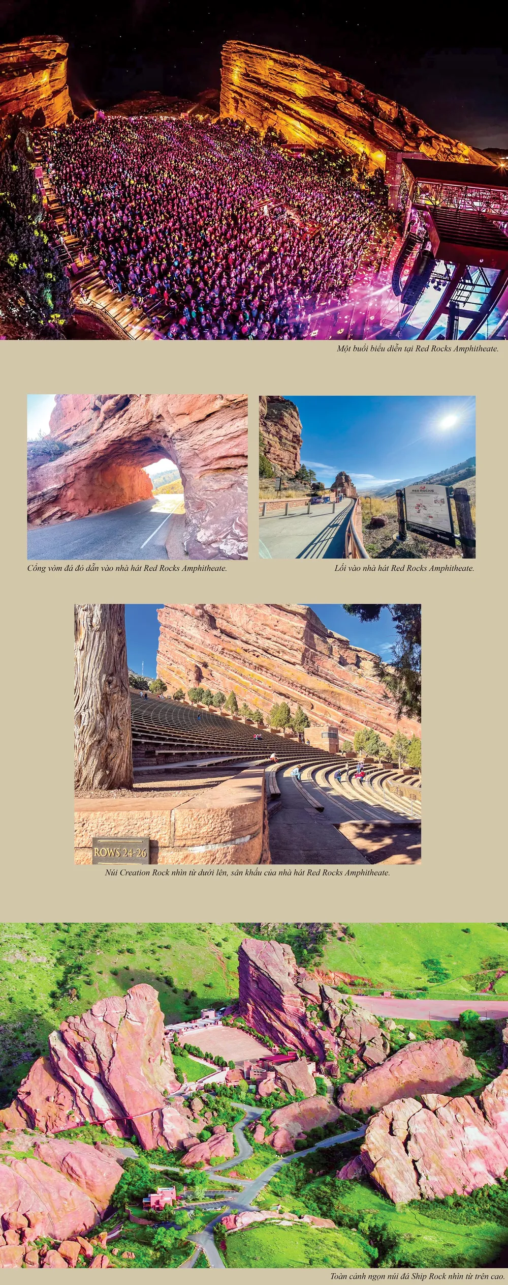 Nếu mùa xuân là mùa hoan ca của vạn vật cùng hòa sắc, hòa âm và đến Red Rocks Amphitheatre, bạn sẽ không bao giờ quên mặt trăng nhú trên bầu trời đêm Denver, khi Neil Young nhập hồn vào “Harvest Moon”; cảm nhận được tiếng mưa rơi vỡ trong nụ cười buồn bã James Taylor vừa rải guitar vừa tự sự “Oh, I have seen fire and I’ve seen rain. I’ve seen sunny days, I thought they’d never end”; hay cảm giác đám đông hoảng loạn bơ vơ với trào lưu thanh âm “Widespread panic” theo gió núi loang rộng lên vách sa thạch rồi phả vào bầu trời u ám.