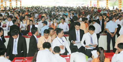 Trong buổi sáng mở bán đã thu hút hơn 800 khách hàng (ảnh) và kết quả có 670 trên tổng số hơn 700 nền đất được giao dịch thành công. Thanh khoản của dự án Richland City vượt trên cả mong đợi nhờ giá thành và chính sách bán hàng hấp dẫn. Cụ thể mỗi sản phẩm giá bán chỉ từ 416 triệu đồng, khách hàng chỉ cần thanh toán trước 125 triệu đồng (30% giá trị hợp đồng) đã có thể sở hữu ngay 1 nền nhà phố.