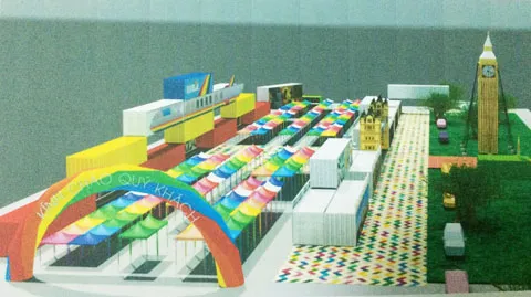 Khu trung tâm mua sắm có tổng diện tích hơn 5.000 m2 với hơn 300 gian hàng được dựng lên bằng container và lều bạt. Trong đó, gian container có diện tích 6,25m2/gian, gian lều có diện tích 4m2/gian. Tại đây, giới khởi nghiệp có cơ hội tạo cho mình một showroom tùy ý. Đại diện CTCP Đầu tư Phú Hoàng Gia, chủ dự án, cho biết sẽ hỗ trợ chi phí và miễn phí 1 tháng thuê mặt bằng và tư vấn thiết kế gian hàng cho những bạn trẻ muốn thực hiện hóa giấc mơ khởi nghiệp.