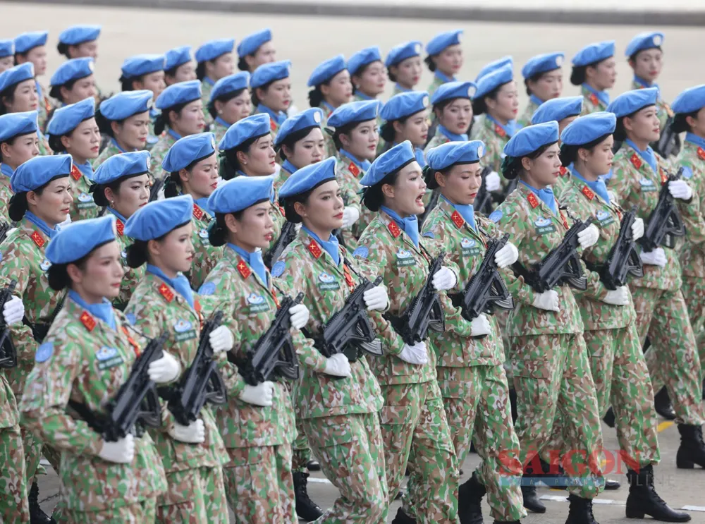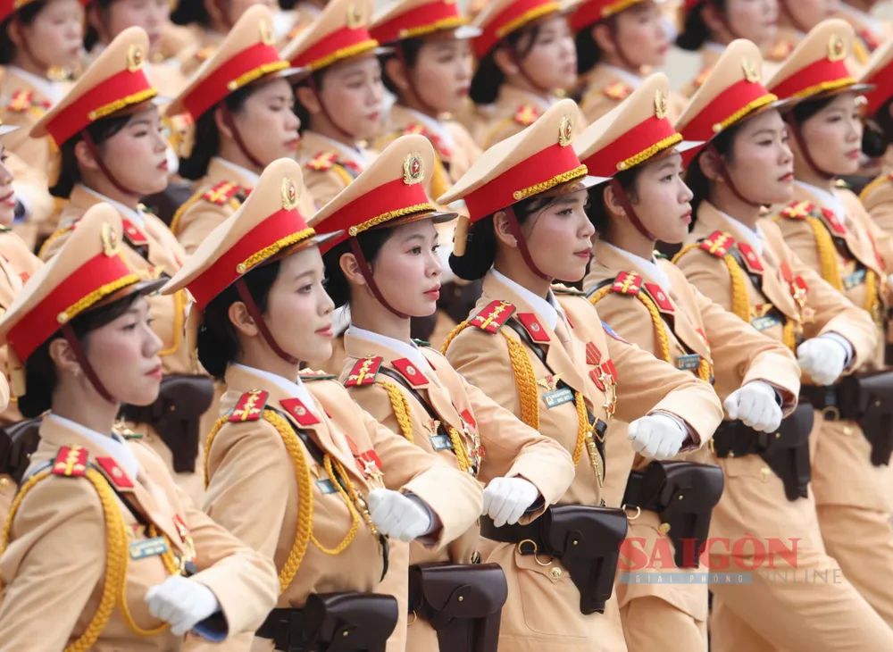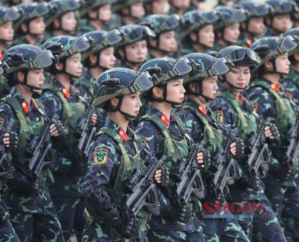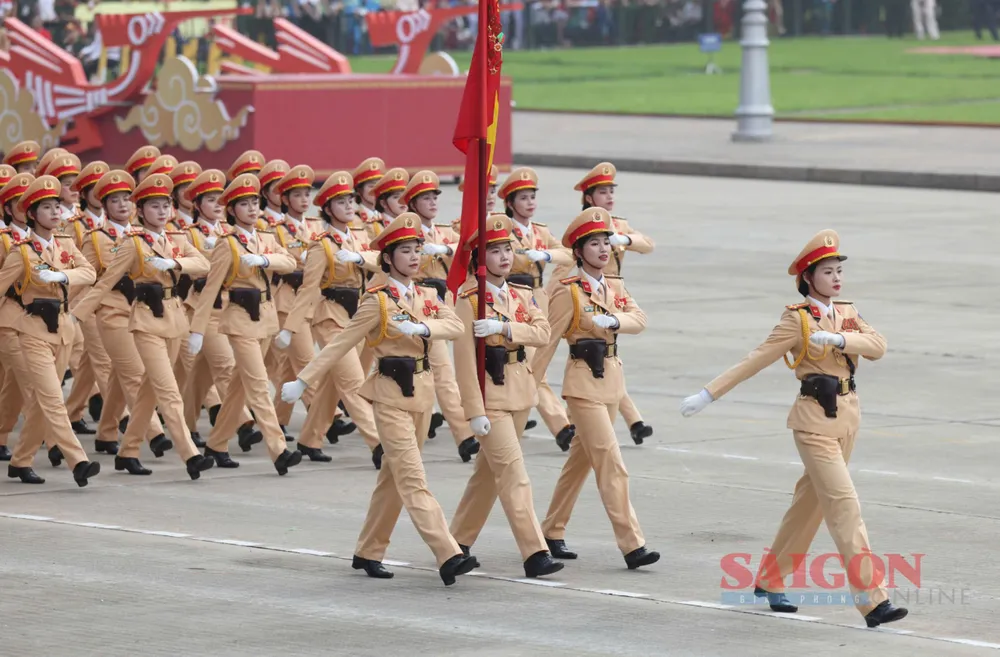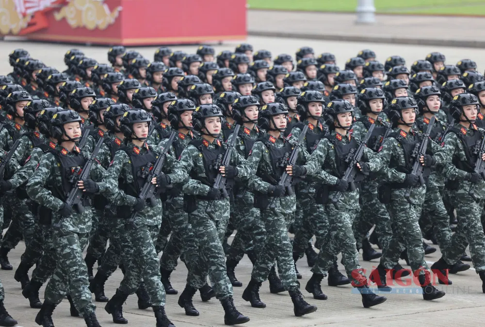 Những bóng hồng thuộc các lực lượng vũ trang diễu binh, diễu hành qua Quảng trường Ba Đình tại Lễ kỷ niệm, sáng 2-9. Ảnh: QUANG PHÚC