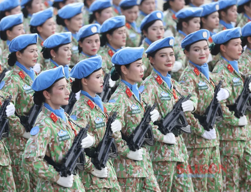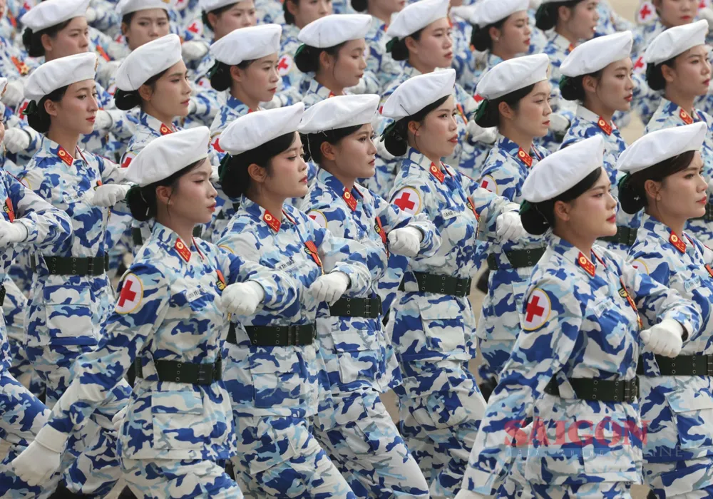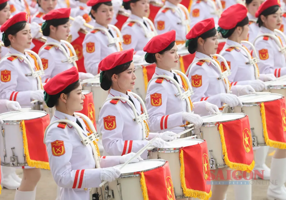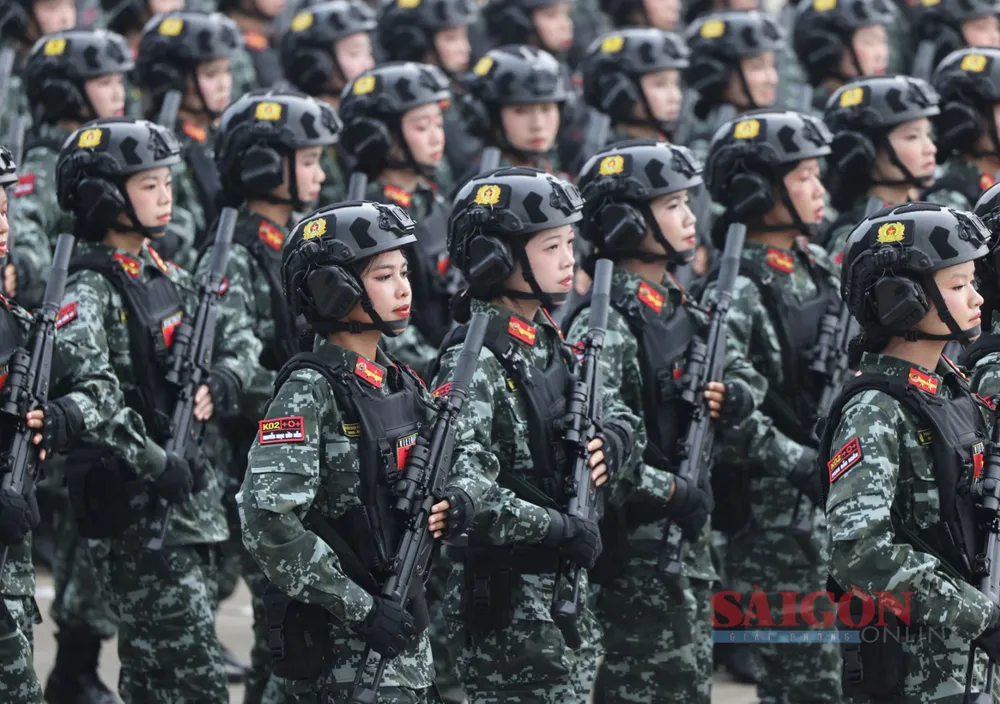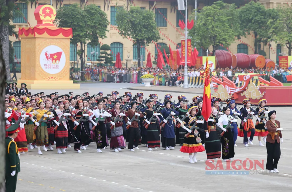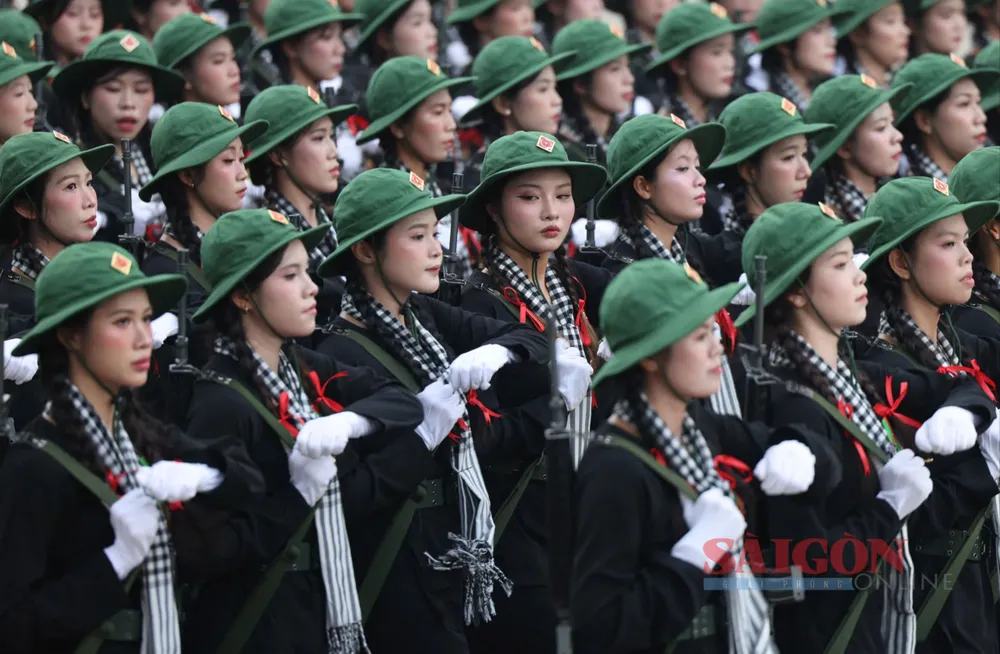 Những bóng hồng thuộc các lực lượng vũ trang diễu binh, diễu hành qua Quảng trường Ba Đình tại Lễ kỷ niệm, sáng 2-9. Ảnh: QUANG PHÚC