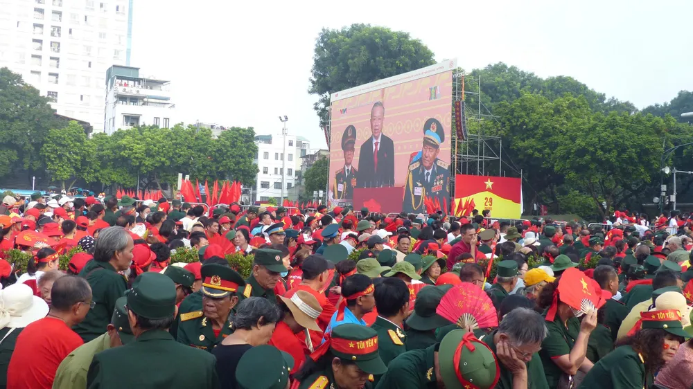 “Trong giờ phút thiêng liêng này, mỗi chúng ta như đang thấy vang vọng lời Tuyên ngôn độc lập năm 1945 của Bác Hồ, thấy triệu triệu trái tim Việt Nam cùng chung nhịp đập tự hào, cùng ngân vang lời thề “quyết tử để Tổ quốc quyết sinh”. Chúng ta càng thấu hiểu giá trị của “Độc lập”, “Tự do”, “Hạnh phúc”; càng quý trọng và càng quyết tâm vun đắp hòa bình; càng thấm thía ý nghĩa thiêng liêng của từ “Nhân dân tôi”, “Tổ quốc tôi”", Tổng Bí thư phát biểu.