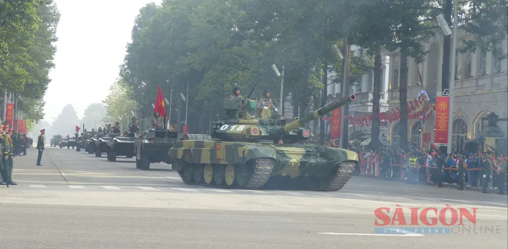 Khối diễu binh xe tăng, xe thiết giáp trên đường Hùng Vương