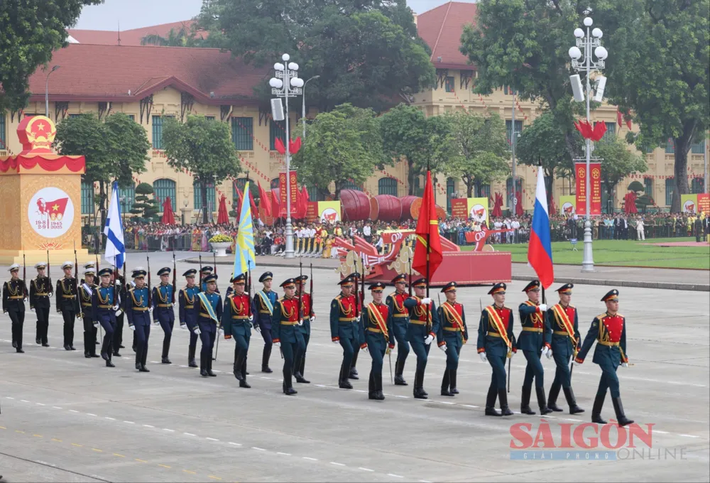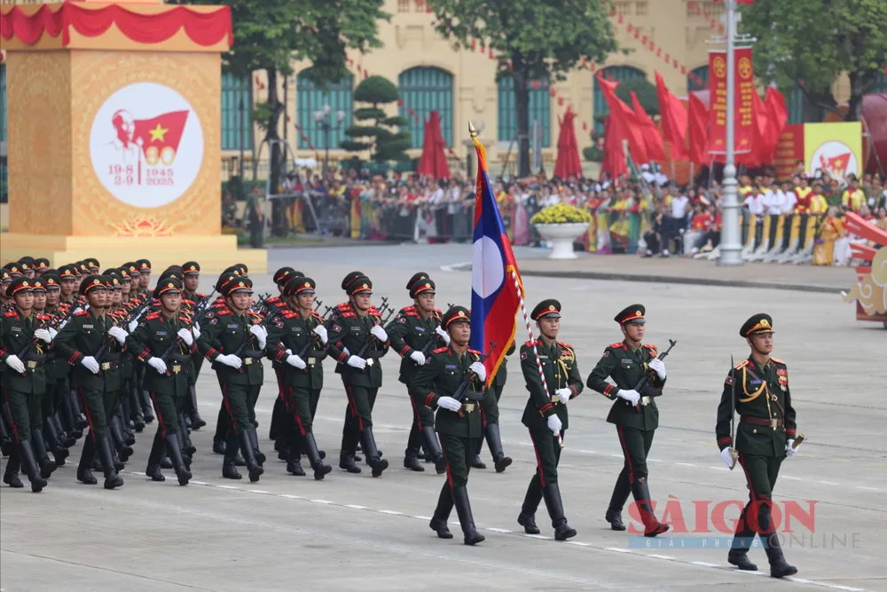 Các khối quân đội nước ngoài trên đường Hùng Vương, theo thứ tự: Trung Quốc, Nga, Lào, Campuchia. Ảnh: QUANG PHÚC