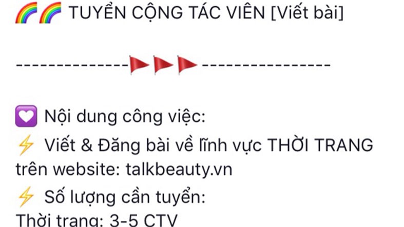 Vô số những thông tin tuyển dụng viết content được đăng trên mạng xã hội