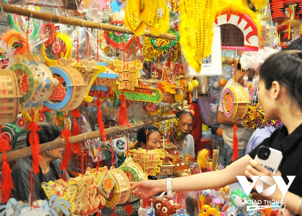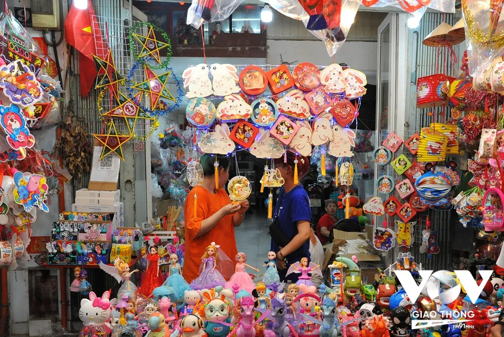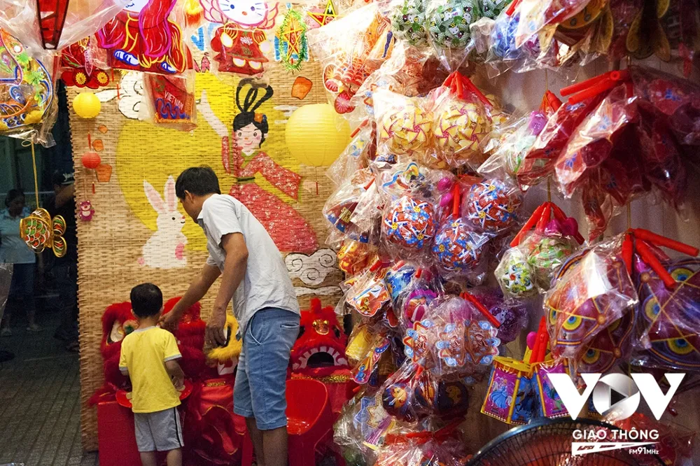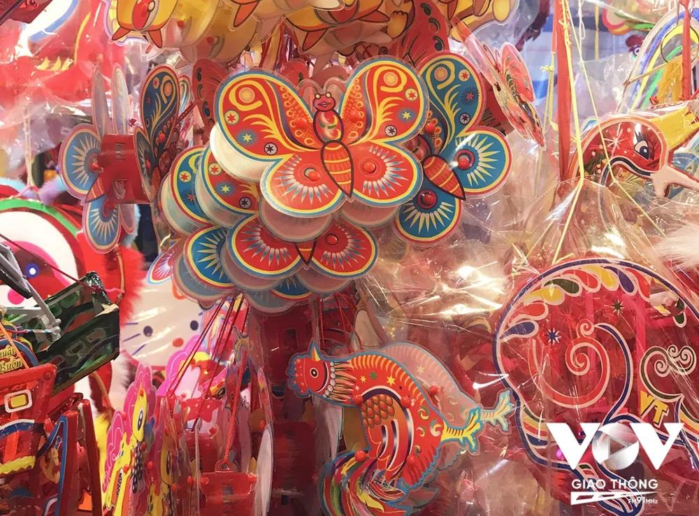 Có hơn 100 hộ kinh doanh đa dạng các mặt hàng chơi Trung thu, phong phú mẫu mã lồng đèn, từ lồng đèn truyền thống khung tre cho tới lồng đèn điện tử phát nhạc.