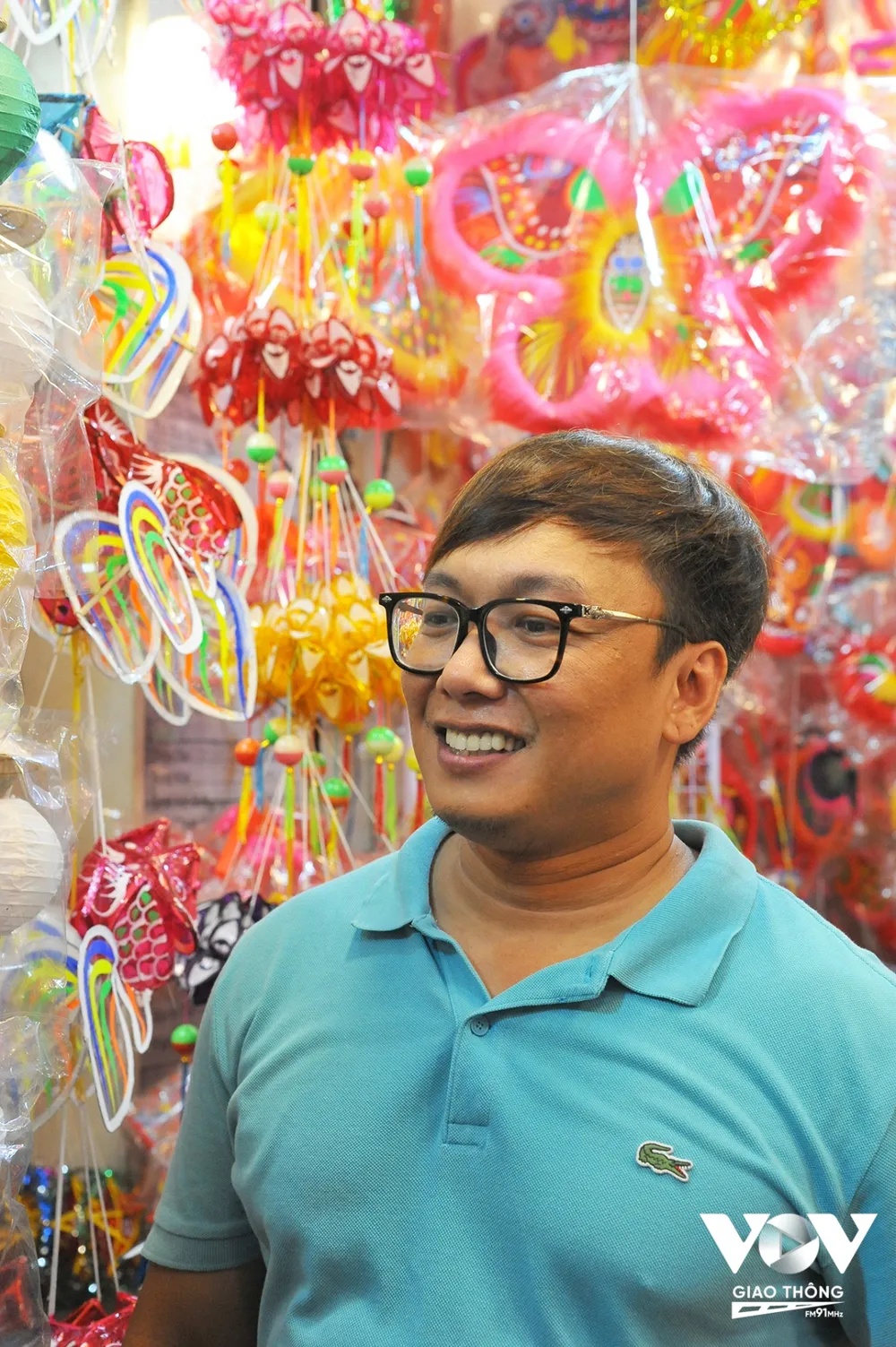 Anh Minh Phan ở quận 7 tranh thủ chở con đến phố lồng đèn tham quan cho biết trước khi phố vào cao điểm Trung thu rất đông người. Anh cảm nhận: “Mình thấy phố lồng đèn rực rỡ nhiều màu sắc, không chỉ con mình mà mình cũng thích.”
