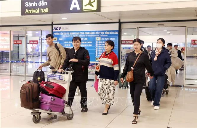 Hành khách hạ cánh tại sân bay Nội Bài.