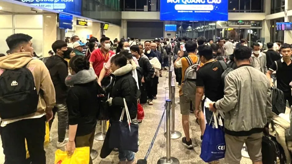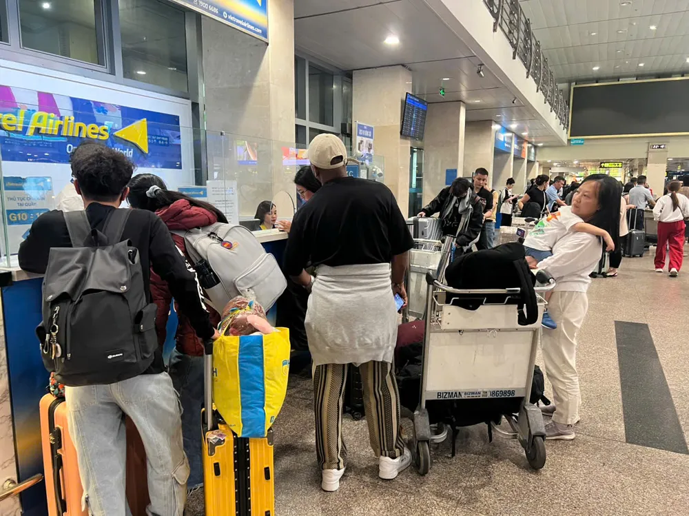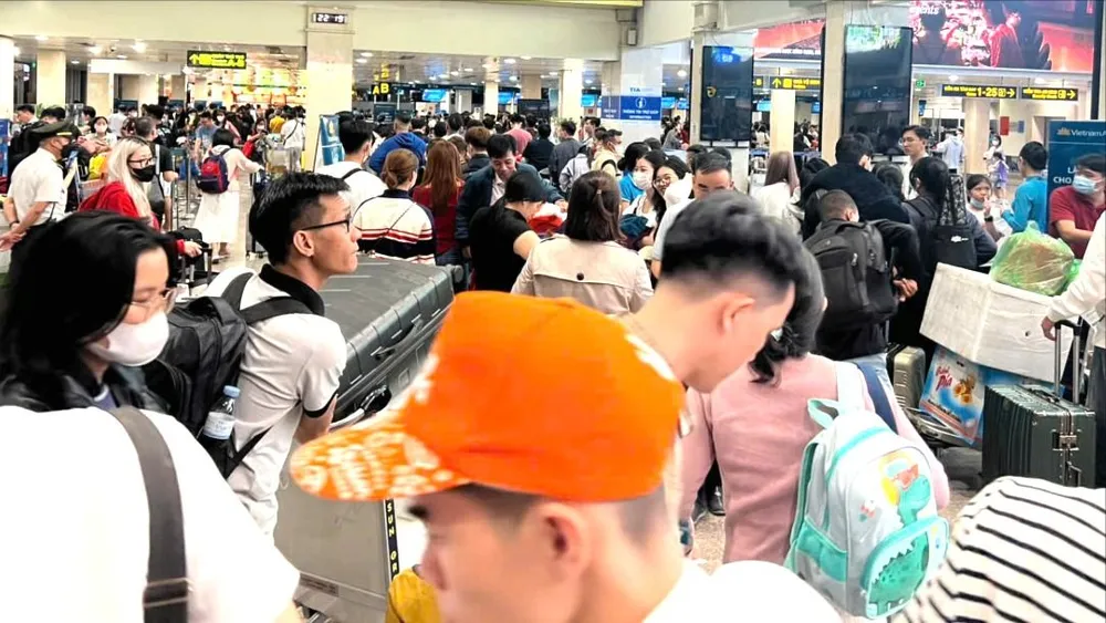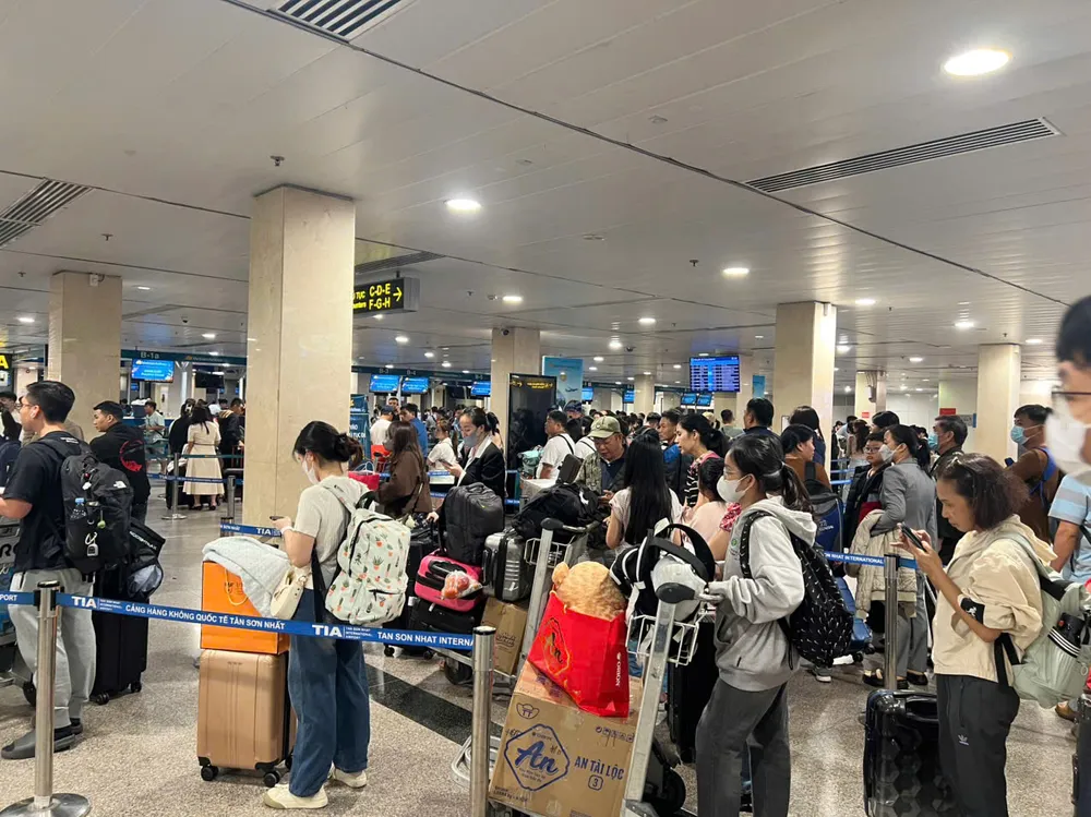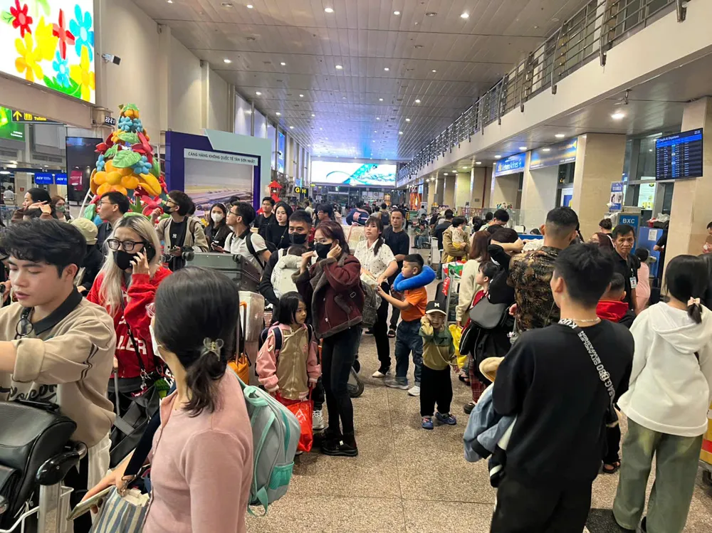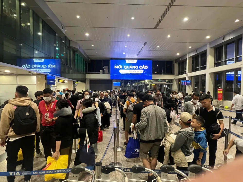 Tại sân bay Tân Sơn Nhất, lượng hành khách đổ về rất đông, đặc biệt là các chuyến bay nội địa. Hành khách xếp hàng dài chờ làm thủ tục bay rất lâu, hiện đang quá tải.