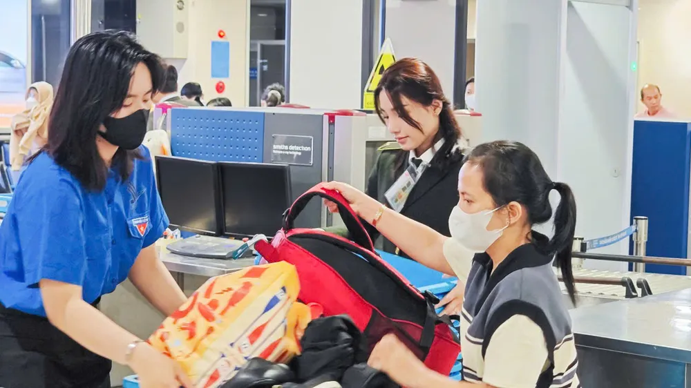 Hành khách làm thủ tục qua cửa an ninh nhanh gọn. Ảnh: QUỐC HÙNG