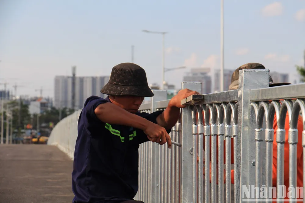 Phần vỉa hè, lan can cầu cơ bản đã hoàn thành. |