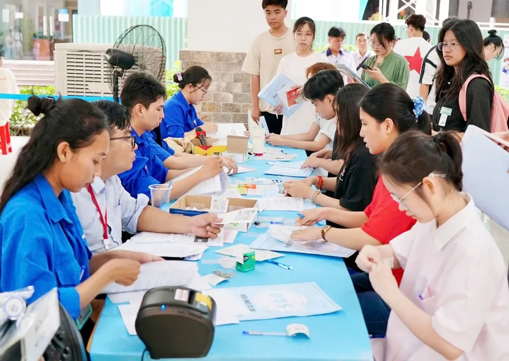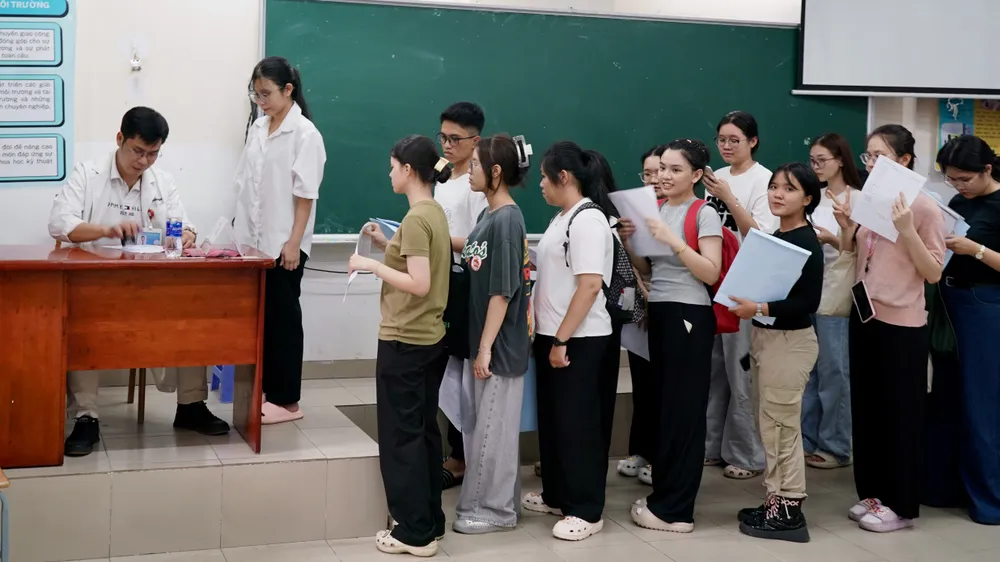 Tân sinh viên làm thủ tục khám sức khỏe trong ngày đăng ký nhập học tại Trường ĐH Sài Gòn. Ảnh: Hoàng Hùng