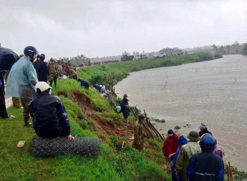 Người dân dồn lực bảo vệ đê, khắc phục sự cố khi bão số 3 đổ bộ. Ảnh: MXH