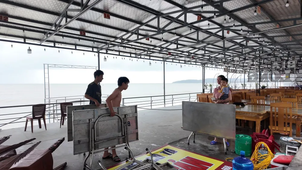 Trong 3 giờ qua, bão gần như đứng yên. Gió mạnh cấp 7-8 tiếp tục được ghi nhận ở nhiều nơi.