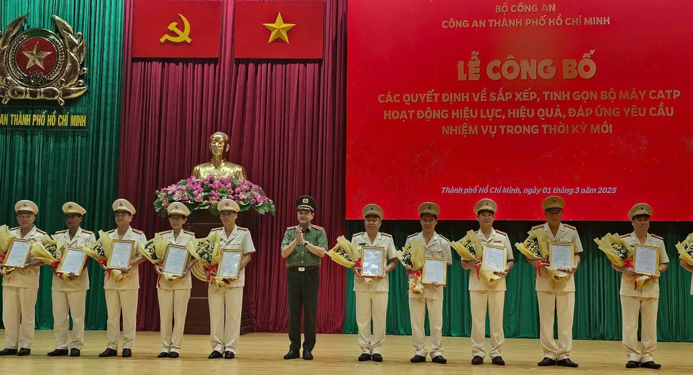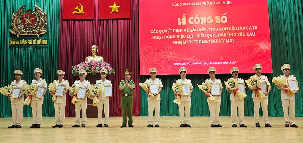 Sáng 1-3, Công an TPHCM tổ chức lễ công bố quyết định của Bộ trưởng Bộ Công an về việc sắp xếp, tinh gọn tổ chức, bộ máy Công an TPHCM.
