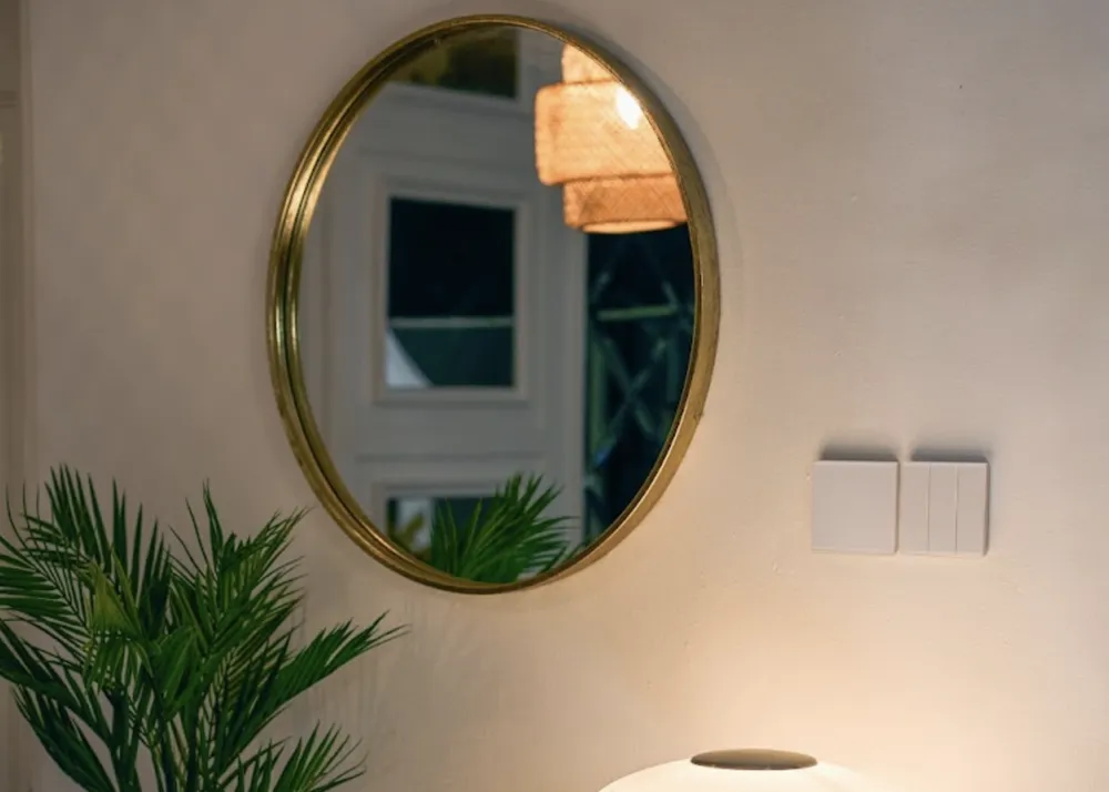 Điểm nổi bật của Vivace E nằm ở mặt che tràn viền, bước đột phá so với các công tắc truyền thống, tạo nên bề mặt liền mạch vừa nổi bật về thẩm mỹ, vừa mang lại tính ứng dụng cao. Thêm vào đó là các góc bo cong mềm mại, cùng thiết kế mỏng gọn tạo nên sự thanh lịch, tối giản, dễ dàng hòa quyện với nhiều phong cách nội thất khác nhau.
